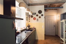 Die kleine Auszeit: in einer reizenden Wohnung mit gut ausgestatteter Küche, ausgewähltem Geschirr, Kochbüchern, einem angeschlossenem Wohn- Essbereich, einem Schlafzimmer mit Leseecke und einem individuellen Badezimmer. Zur Unterhaltung findest du Bücher, Spiele und natürlich deinen Reisepartner. Ein markantes Blumensofa lädt zum Entspannen nach einer Tour durch die Stadt ein. Diese Wohnung verfügt über ein rustikales Doppelbett.